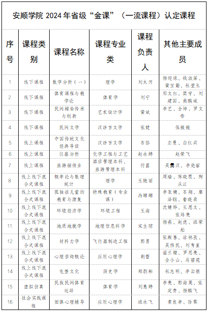 喜报 | 安顺学院16门课程获认定为贵州省“金课”(一流课程)