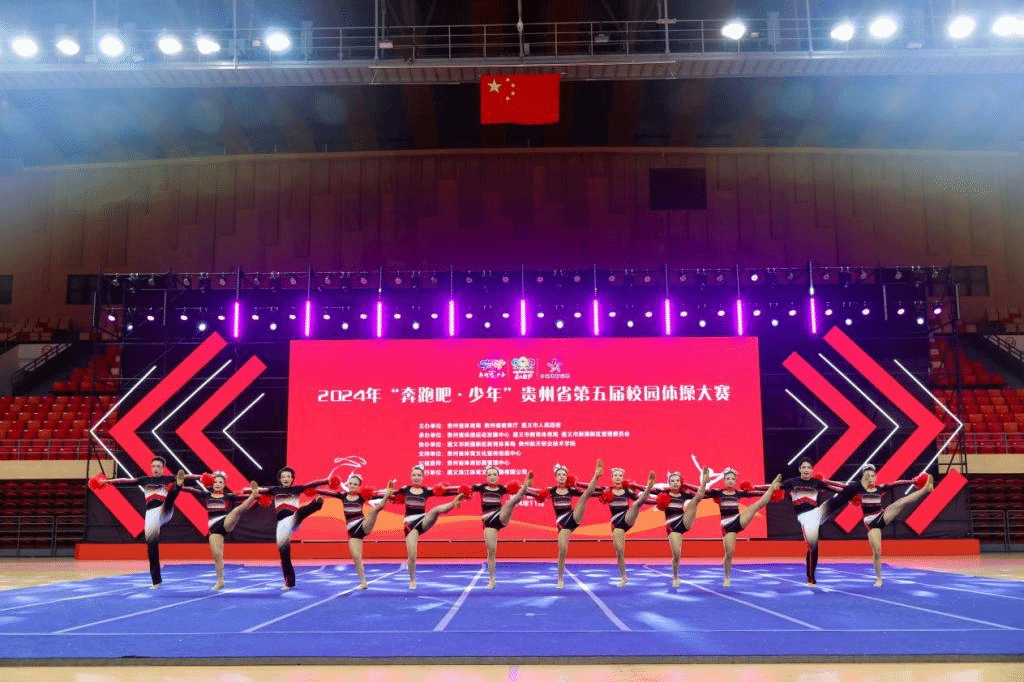 2024年11月21日至25日,2024年“奔跑吧少年”贵州省第五届校园体操大赛在遵义市奥林匹克体育中心举办。来自全省、市(地区)的288支代表队分幼儿组、小学组、初中组、高职高专组、高中中职组、大学组一共有六个组别参加大赛。安顺学院啦啦操队在大赛中取得佳绩。