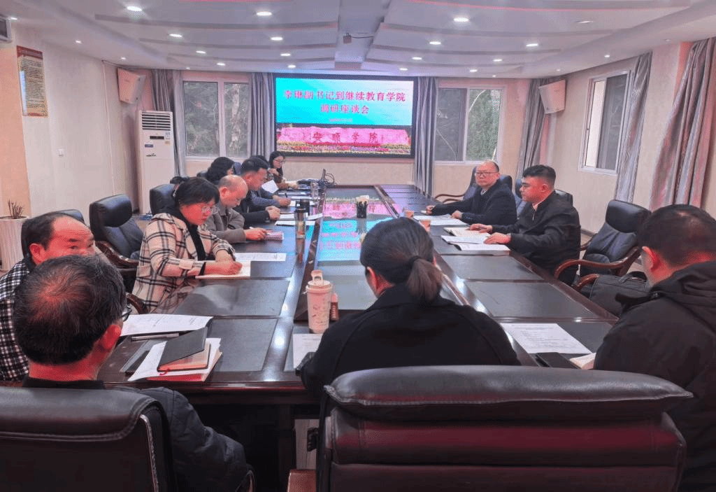 2025年3月4日上午,安顺学院党委副书记李琳同志到继续教育学院开展调研座谈。继续教育学院全体教职工参加,继续教育学院党委书记肖青民同志主持会议。