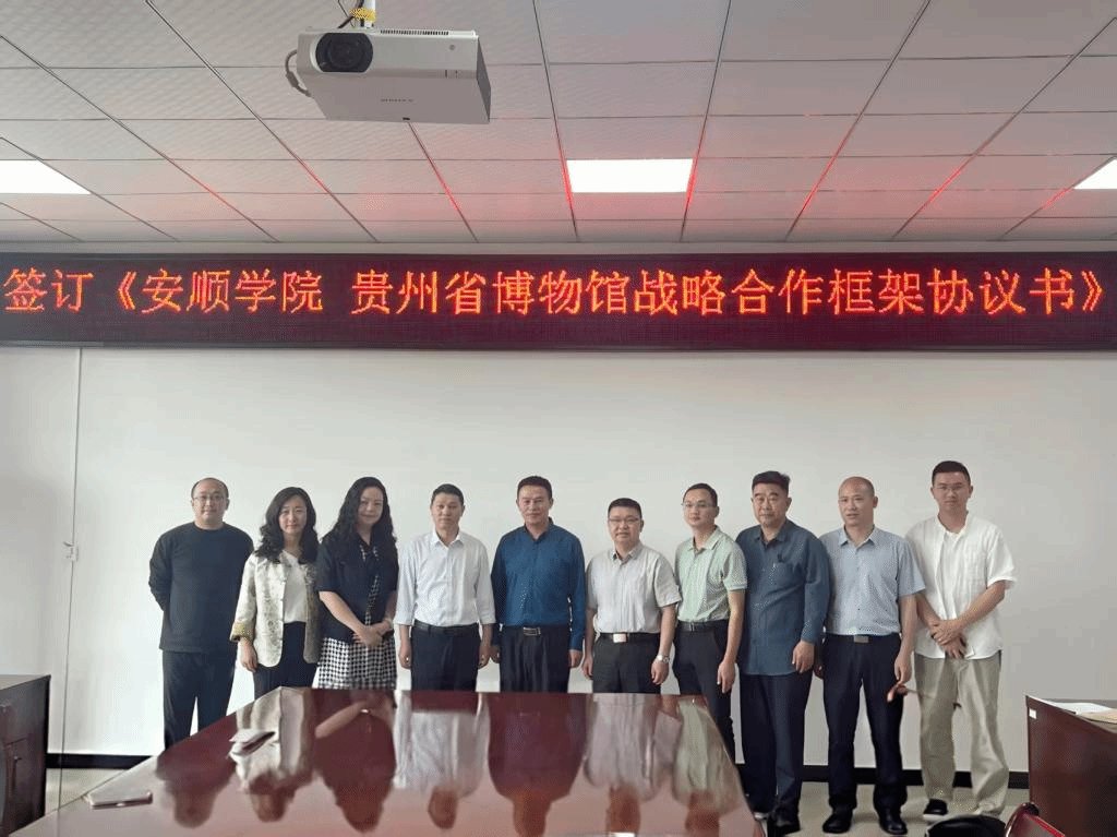 最后,张来作总结发言,回顾了我校历史与发展情况,对双方合作的具体方式提出了建议。双方在前期协商一致的基础上,正式签署了《安顺学院贵州省博物馆战略合作框架协议书》。