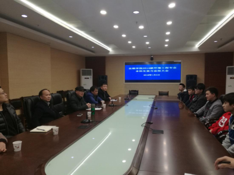 2018年01月2日下午,安顺学院资源与环境工程学院环境工程专业赴市环保局实习队召开实习总结会,市环保局总工程师马玉星,市环保局信息中心主任陈玉林,资环学院院长冯开禹,副院长王家录,环境工程教研室主任王恩文,班主任班荣舶和实习带队教师张炜亮参加。
