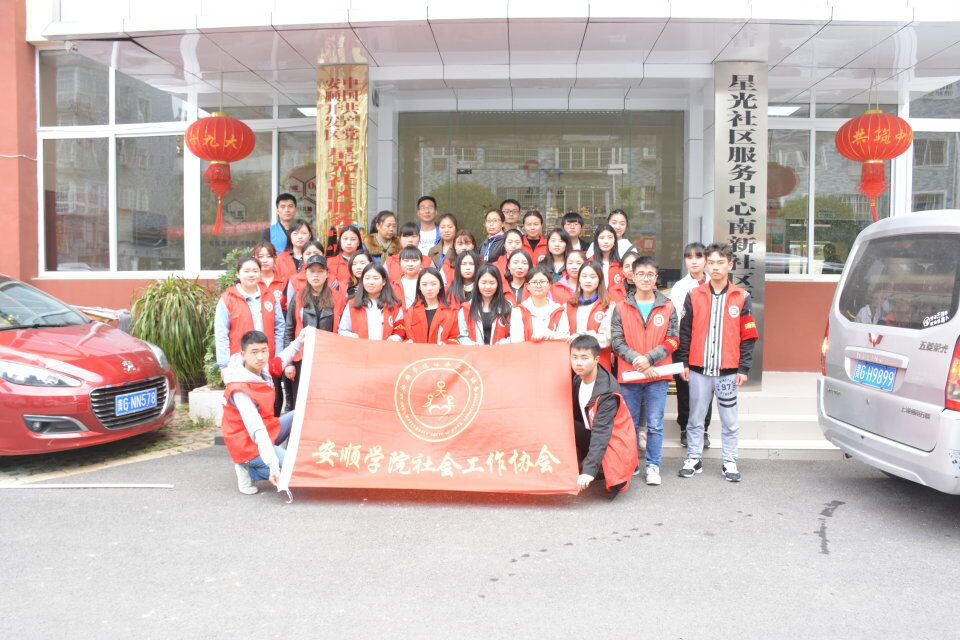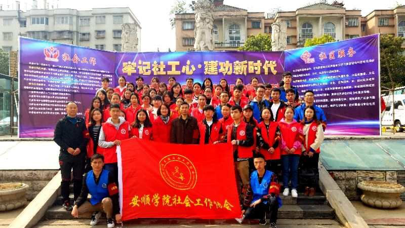 为引领带动社会工作领域高举习近平新时代中国特色社会主义思想伟大旗帜,深入学习贯彻党的十九大精神。3月23日上午,在市民政局、开发区党工委、区管委会的指导下,安顺开发区管委会主办,民政局、星光社区服务中心、安顺市爱心义工社承办的2018年“国际社工日”的宣传活动在开发区南马广场举行。安顺市社会义工和社会各界人士参与活动,安顺学院社工协会成员在政法学院副院长马银成院长和社工专业教师苗青青老师的带领下参与活动。