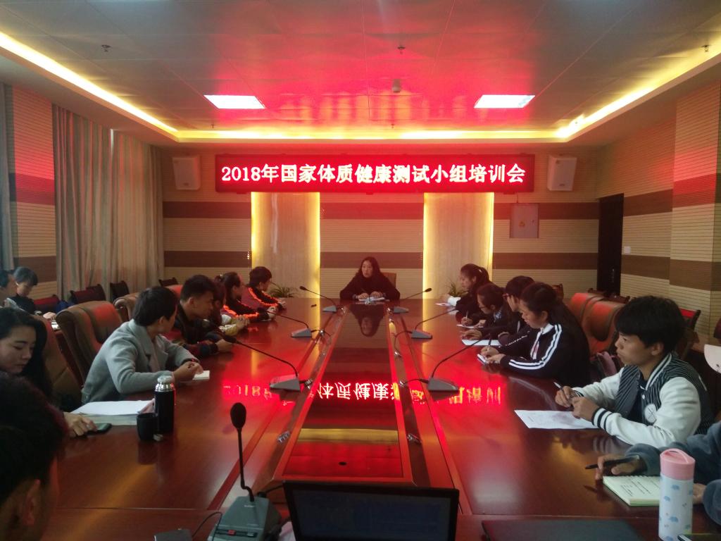 根据贵州省教育厅、省发改委、省财政厅、省体育局印发《关于进一步加强学校体育工作的实施意见》的通知(黔教办体﹝2015﹞73号)文件精神和《学生体质健康监测评价办法》及《高等学校体育工作基本标准》的有关要求,为切实加强我校2018年学生体质健康标准测试和上报工作,体育学院于2018年3月30日在学校电教楼0941教室对体育学院测试小组和各学院的体育部长及各班体育委员进行测试前的培训。