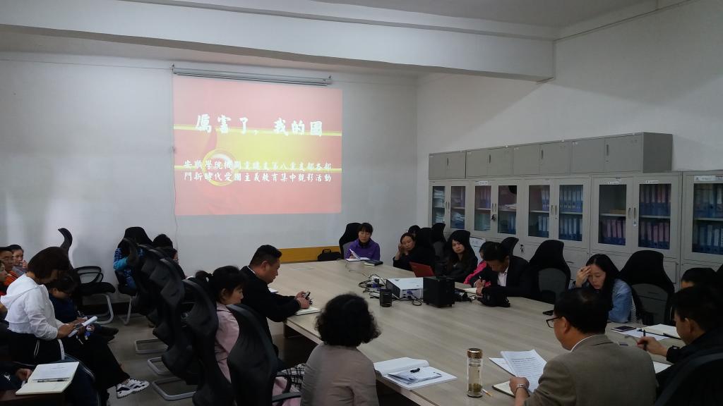 会上,原文传达了《中共贵州省委贵州省人民政府关于进一步加强和改进全省高校党的建设工作的意见》文件精神和省委常委、省纪委书记、省监察委主任夏红民在全省国有企业和高等院校党的建设工作推进会议上的通报。并组织收看了电教片《厉害了,我的国》。