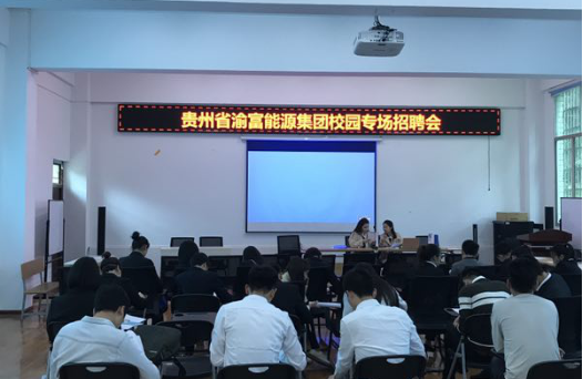 2018年5月4日下午,经济与管理学院在安顺学院招聘大厅举办贵州省渝富能源集团校园专场招聘会,经管学院党总支书记赵伶俐、辅导员胡晓青及2014级学生参加招聘会。