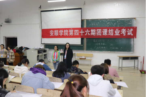 11月9日晚,安顺学院第四十六期团课结业考试在新教学楼举行。共青团安顺学院委员会副书记胡蕾及相关负责人进行现场监考巡视,团校700余名学员参与考试。为期两个周的团课教育圆满结束。