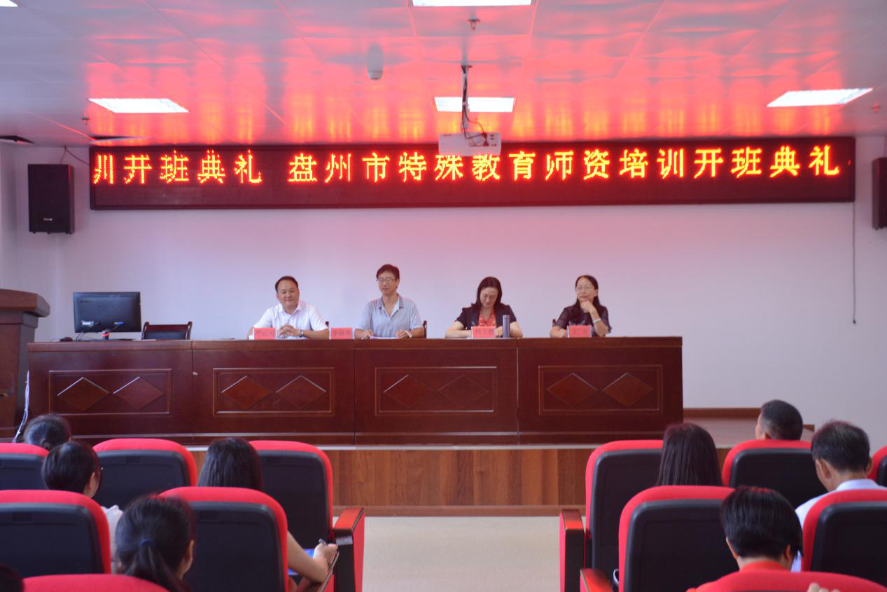 8月20日上午9时,盘州市特殊教育师资培训班开班典礼在贵州省特殊教育师资培训中心正式举行。开班典礼由安顺学院特殊教育学院党总支书记师文慧主持,出席本次盘州市特殊教育师资培训开班典礼到场的领导分别是安顺学院特殊教育学院院长李镇译、特殊教育学院副院长王玉以及盘州市特殊教育学校校长严云元。