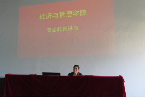 9月5日下午,经济与管理学院在电教楼0951教室开展新生入学安全教育讲座。经济与管理学院党总支书记韦英主讲,经济与管理学院2018级全体新生听讲。