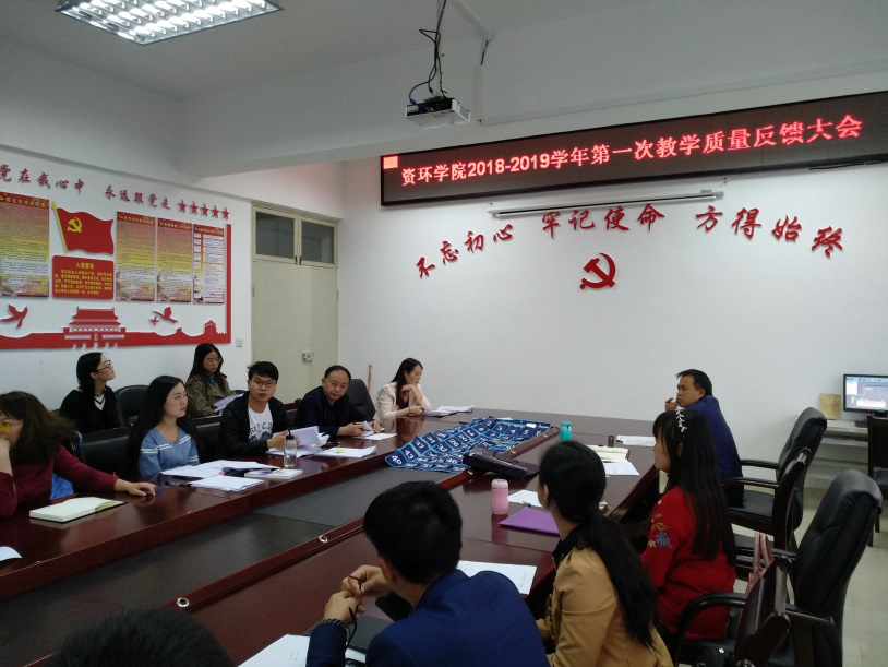 9月17日下午,资环学院在学院会议室召开2018-2019学年第一次教学质量反馈会,会议由资环学院李仕蓉副院长主持,全院教师参会。