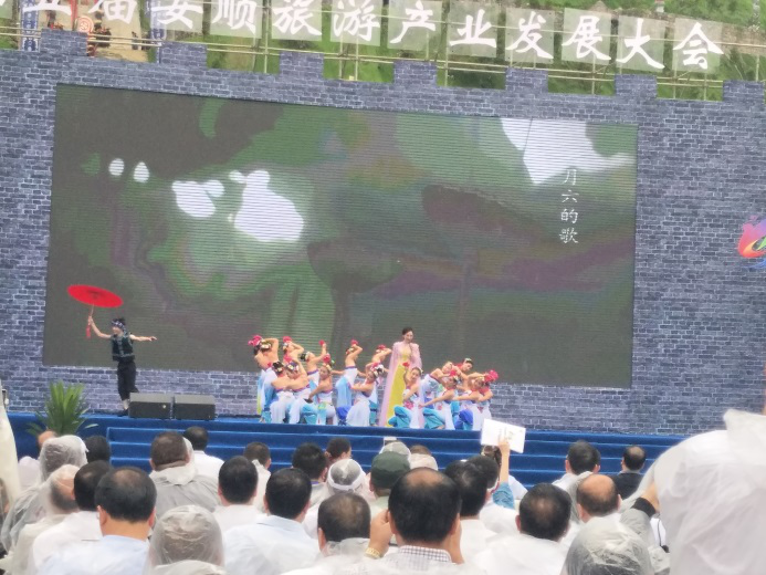 9月21日上午,第五届安顺旅游产业发展大会在紫云自治县格凸河景区亚鲁王城举行。安顺学院资源与环境工程学院2016级地理科学班袁鸿、汪凤群同学在班荣舶老师的带领下,作为安顺市礼仪队成员,服务安顺市第五届旅游产业发展大会礼仪接待,并参与文艺节目演出。