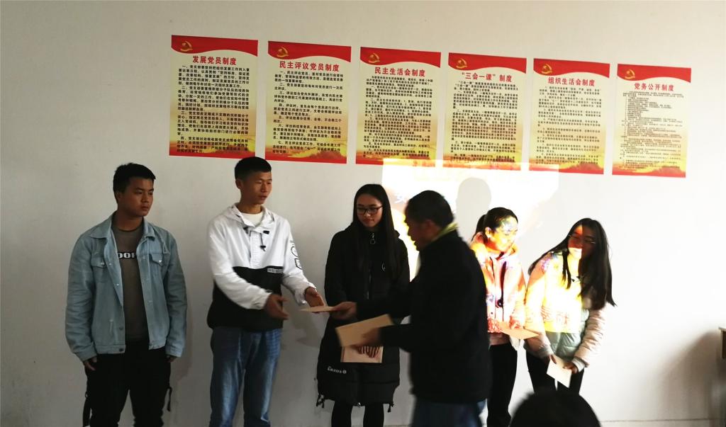 喻辉书记和关工委老同志蔡方明为11名家庭经济困难学生发放了帮困助学金,共计4400元。