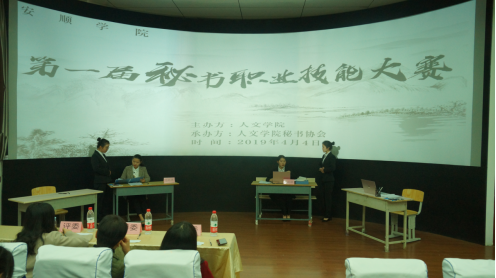 为增强秘书学学生专业素养,提高秘书学学生专业能力,4月4日,人文学院在旅游实训室举办了第一届秘书职业技能大赛。人文学院院长胡赤兵教授、安顺学院科研处副处长石恪、秘书学专业指导老师汪韬钰担任比赛评委。