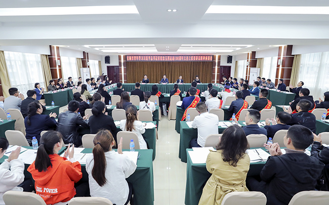 5月6日下午,安顺市青年学习习近平总书记在纪念五四运动100周年大会上重要讲话精神座谈会在市财政局五楼会议室隆重召开。市委书记曾永涛,市委副书记、市长陈训华,优秀青年代表、青年志愿者代表、少先队辅导员代表、农村青年致富带头人及脱贫攻坚一线青年代表、优秀青年代表、行业青年代表等参加会议。我校团委副书记胡蕾带领8名安顺学院优秀学生干部参会。