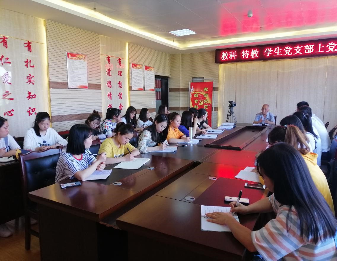 2019年6月3日下午,安顺学院关工委副主任杨通邦同志为教科院、特教院学生党支部全体党员上了一堂题为《学前辈立志为民·步小康决战脱贫》的党课。