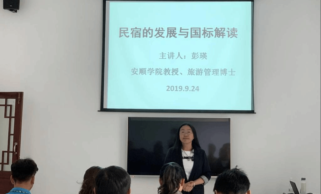 根据《旅游学院教师党支部深入基层践行“两学一做”党建扶贫方案》的安排,2019年9月24日下午,旅游学院党支部副书记彭瑛教授,与教师支部杨慧老师前往镇宁自治县环翠街道高荡村开展主题为“民宿的发展与国标解读”的培训,旨在提升该村民旅游服务技能与素质培训。高荡村委会成员、农家乐经营户和有开展民宿经营打算的村民参加了本次培训。