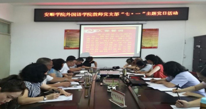 第一阶段,全体党员在嘹亮的国歌声中手抄入党誓词,重温入党初心。用心书写当年入党时的誓词,再次唤醒党员教师入党时的决心和信念,党员教师的光荣感、使命感、责任感在手写誓词中得以再次提升。外国语学院党委书记曲建新,党委副书记、教师支部书记刘碧芬围绕“庆党的生日、讲战疫故事、悟初心使命”主题分别作“护我家园防疫有责安全开学”、“发挥共产党员先锋模范作用 让党旗在战‘疫’一线高高飘扬”专题微党课。,并要求全体党员教师努力做好疫情防控工作,积极投身学校改革发展,为安顺学院创建高水平应用型本科院校贡献出自己的一份力量。学生支部书记王旭就参加社区疫情防控工作的心得体会进行发言,其他党员教师作交流发言。外国语学院党委副书记、院长蒋燕对疫情期间的工作作总结讲话,她要求大家以更加饱满的热情、更加昂扬的斗志、更加务实的作风,立足岗位,扎实工作,继续发扬“特别能吃苦、特别能战斗、特别能奉献”的精神。会上,专职组织员流江涛公布外国语学院全体党员学习测试成绩统计情况。