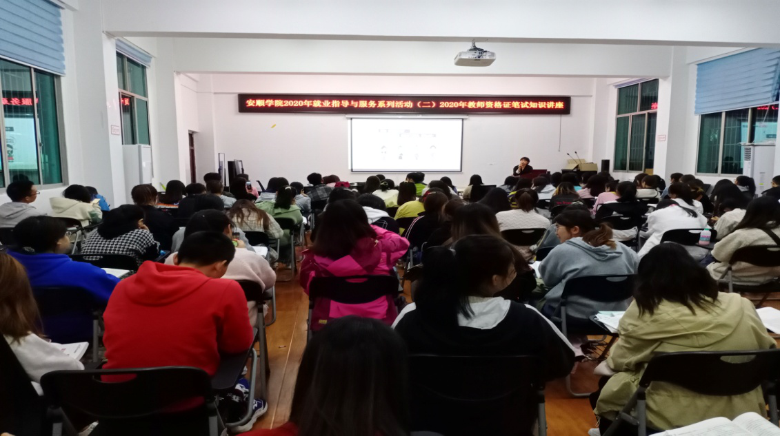 安顺学院于10月14日傍晚,在就业招聘大厅举行2020年下半年教师资格证笔试备考知识讲座。特邀贵州省教育教师考试研究院教师支娟主讲。