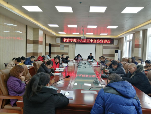 为学习贯彻党的十九届五中全会精神,努力实现教育高质量发展,2020年11月30日,教育学院在特教大楼会议室举行十九五中全会精神宣讲会。教育学院党委书记徐忠同志进行宣讲,教育学院全体教师参加。