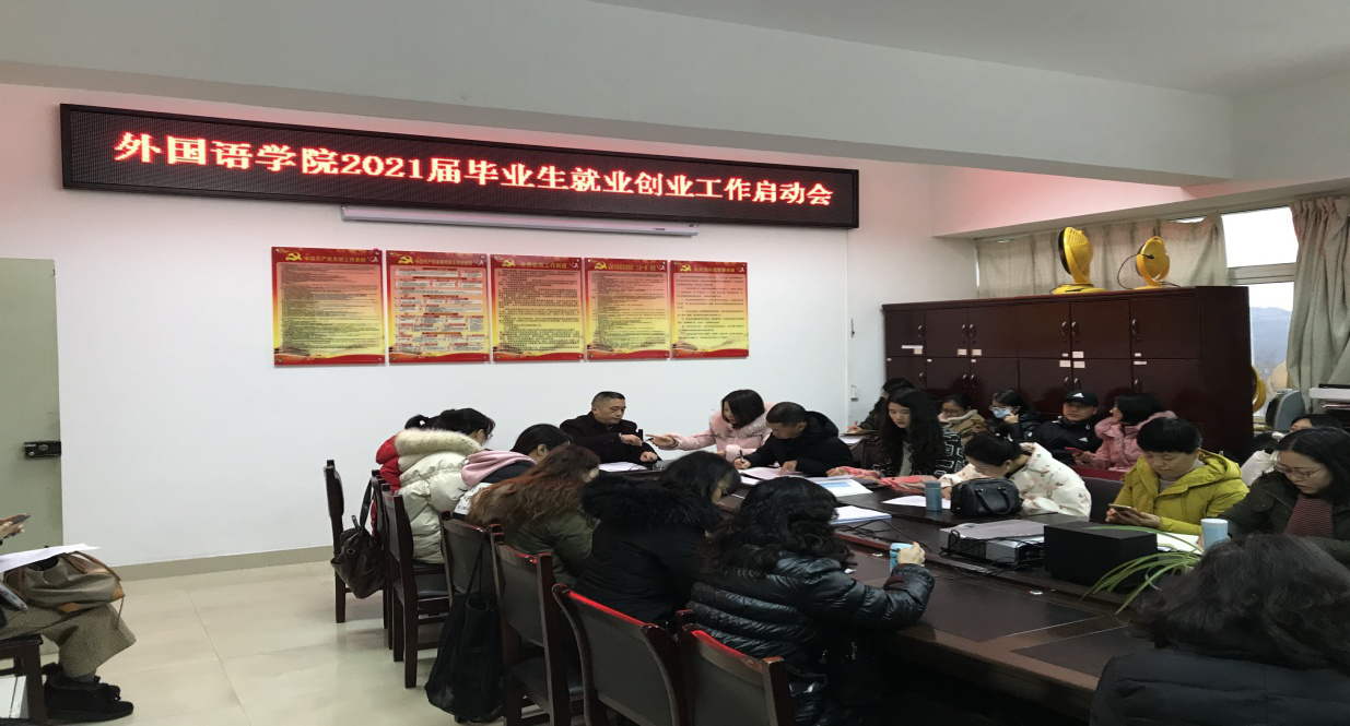 12月07日下午,外国语学院召开2021届毕业生就业创业工作启动会,外国语学院班子成员及全体教师参会,会议由外国语学院党委书记曲建新主持。