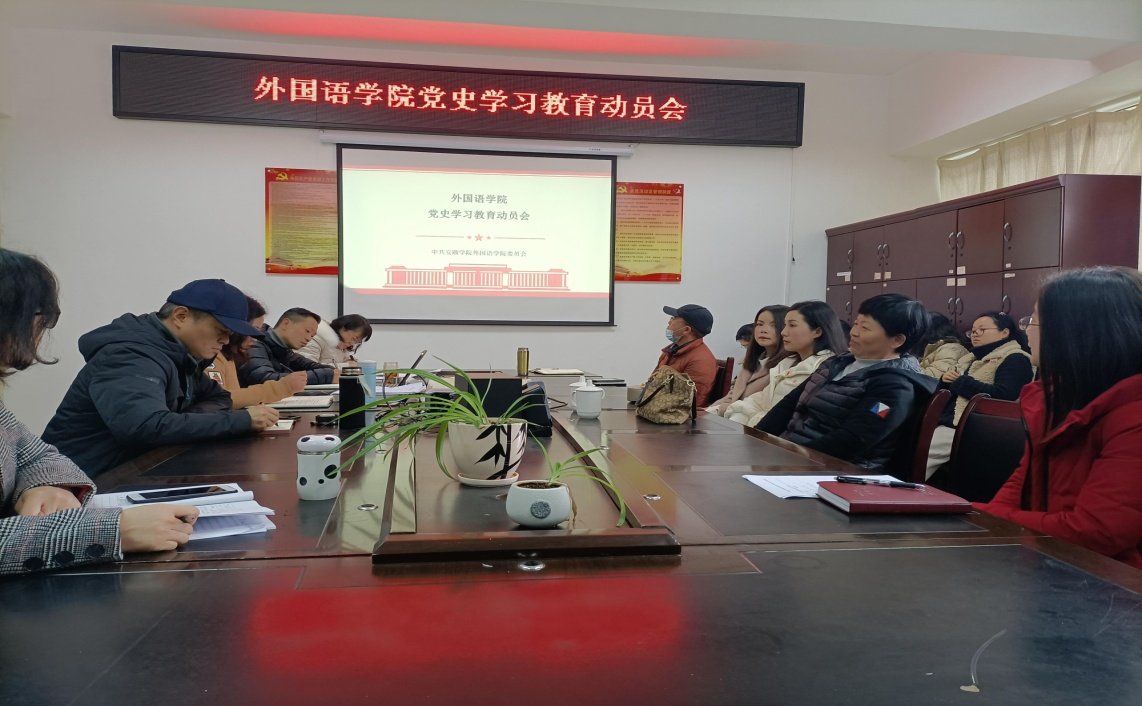 2021年3月12日下午2:30—3:30,外国语学院在新教学楼七楼外国语学院会议室召开党史学习教育动员会,全院教职员工参加会议,会议由外国语学院党委书记刘碧芬主持。