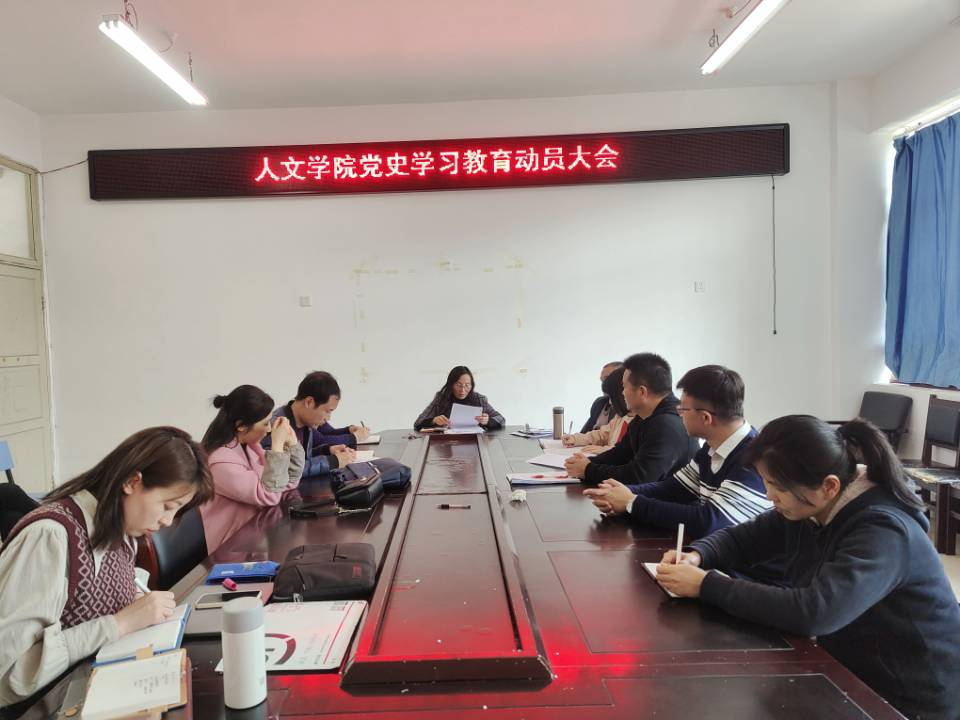 蒋晓兰领学中央、省市、学校党史教育动员大会有关精神,部署安排人文学院党史教育工作。她指出开展党史学习教育,是党中央立足党的百年历史新起点、统筹中华民族伟大复兴战略全局和世界百年未有之大变局、为动员全党全国满怀信心投身全面建设社会主义现代化国家而作出的重大决策,是党的政治生活中的一件大事。