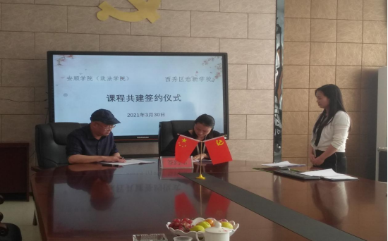 为贯彻《中共中央关于加强和改进未成年人思想道德建设的若干意见》、落实习近平总书记关于革命传统教育要从娃娃抓起的重要指示和党的十九大精神以及全国教育大会精神,充分发挥思想政治教育专业、社会工作专业办学优势,发挥我院服务地方、服务社会的重要作用,共同做好未成年人思想政治教育工作。2021年3月30日,政法学院院长徐忠一行到安顺市西秀区启新学校举行了实习合作签约仪式。