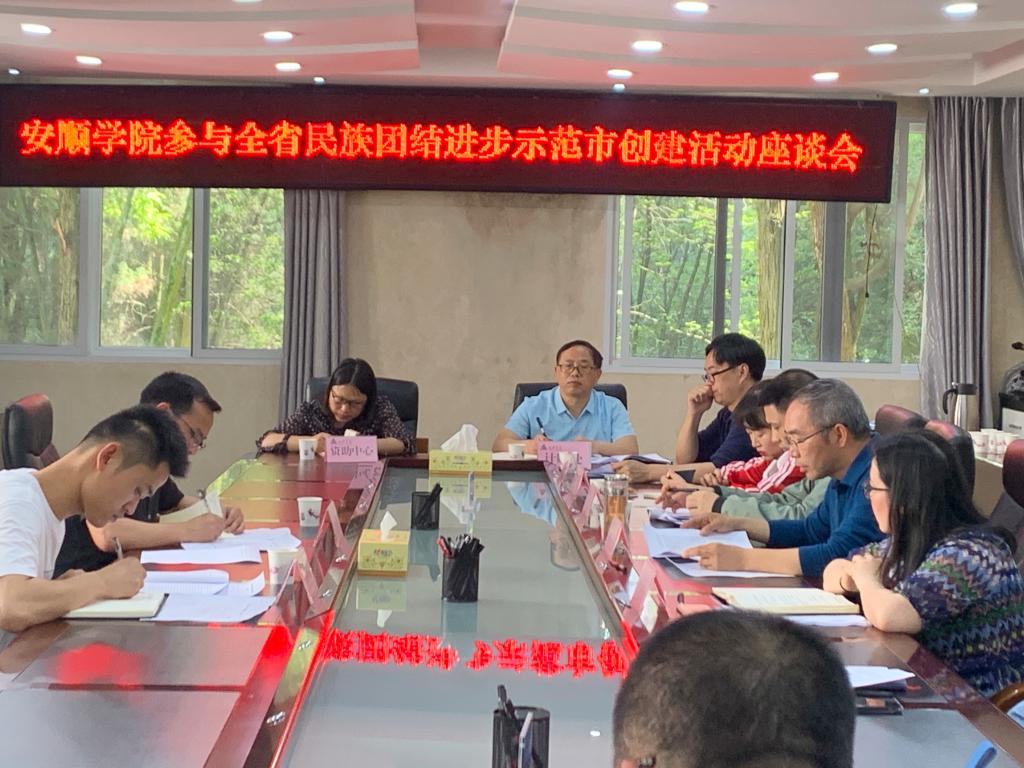 2021年5月13日下午,安顺学院参与全省民族团结进步示范市创建活动座谈会在安顺学院行政楼二楼会议室召开,安顺市民宗委党组成员、副主任、市民创办综合组副组长李金伟,市民宗委政法科副科长古宗杰出席会议,安顺学院党委委员、组织部部长何朝越,各相关部门负责人和代表参加会议。党政办副主任杜珩主持会议。