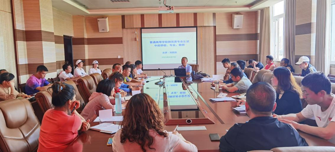 为了进一步加强师范专业认证工作,提升教师对师范专业认证的理念和意识。2021年6月7日下午,体育学院邀请学校质量评估中心主任刘昌友教授在业务学习会议上进行师范专业认证工作培训,体育学院党委书记孙黔、院长邓文红、副院长刘宁、副书记林金茹及全院教师参加培训。