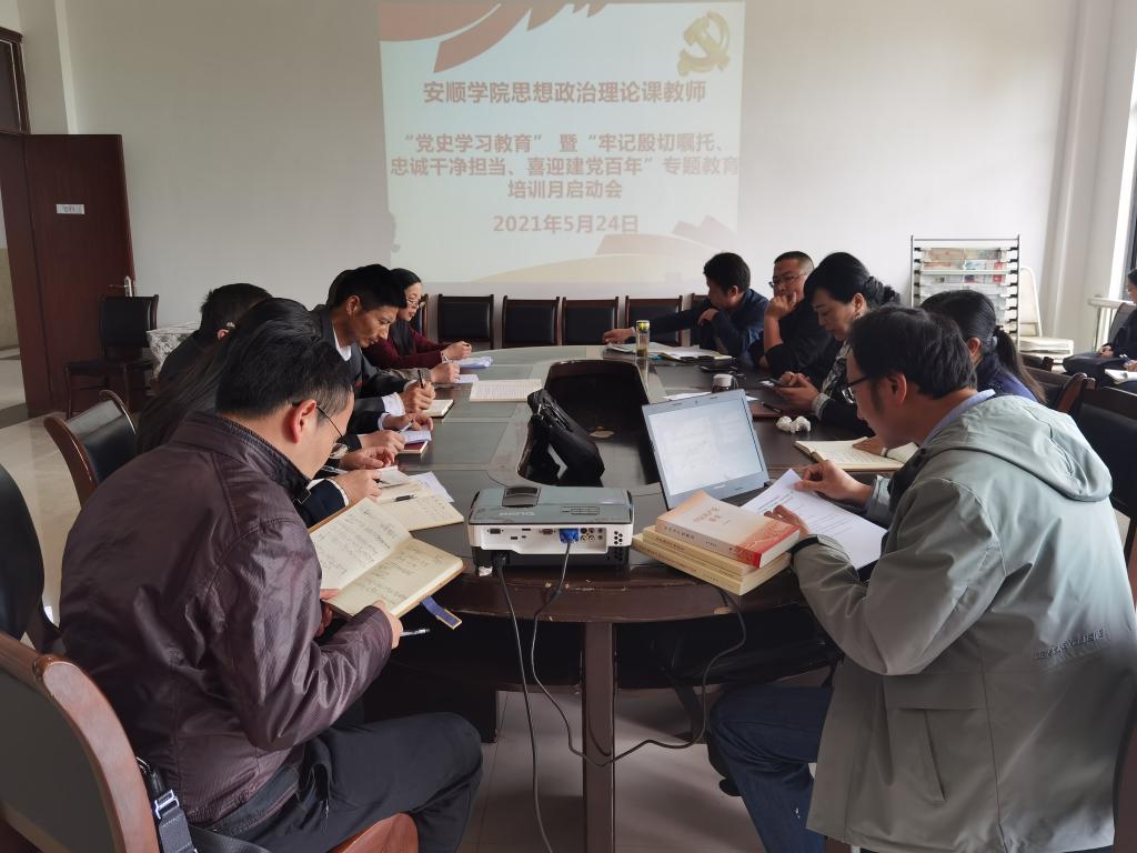 2021年5月24日,安顺学院思想政治理论课教师党史学习教育暨“牢记殷切嘱托、忠诚干净担当、喜迎建党百年”专题教育培训月启动会在马克思主义学院会议室召开,会议由马克思主义学院院长黎进深主持,全体思政课教师参加了启动会。