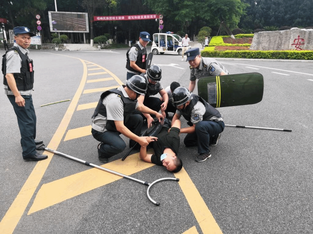 为进一步加强师生应对突发暴恐事件的防范意识,提高面对暴恐事件的合理处理、自护自救及有效逃生避险的能力,6月18日,安顺学院举行反恐防暴演练活动。保卫处副处长郝捷、陈欣现场指挥,保卫处全体职工、创先安保公司驻我校保安人员参加演练。