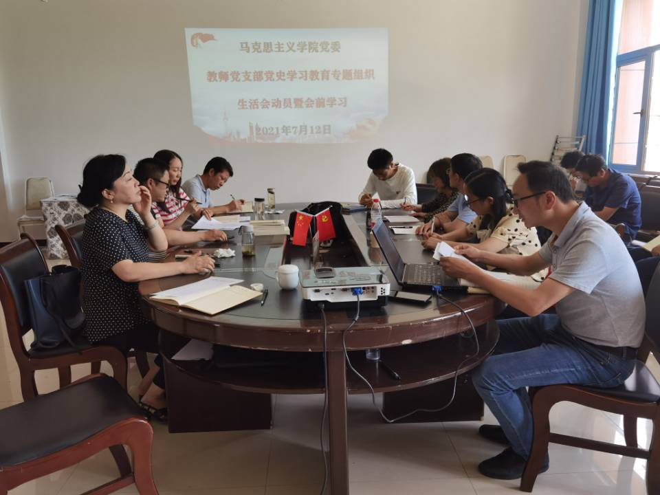 根据学校党委组织部的要求,2021年7月12日下午,马克思主义学院教师党支部召开党史学习教育专题组织生活动员大会。