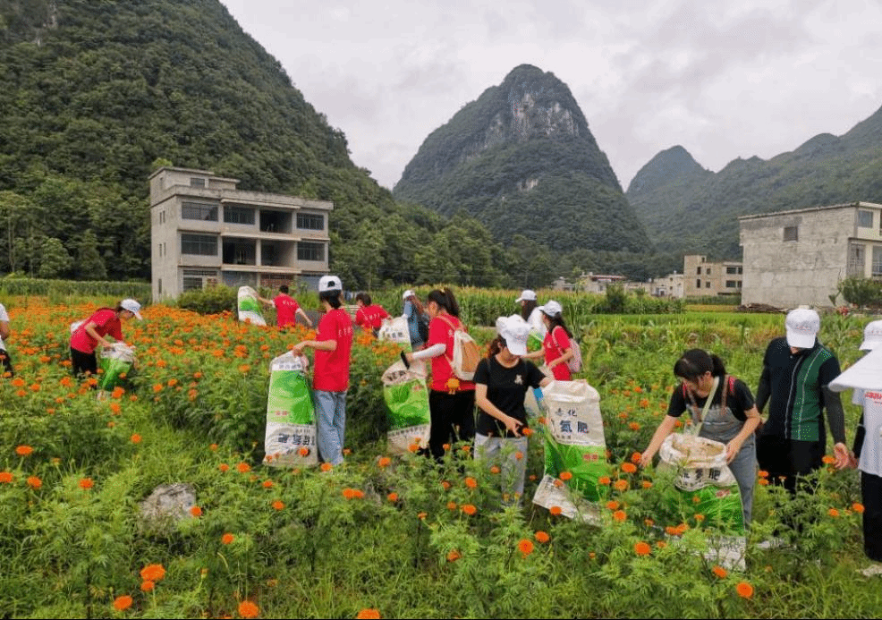 2021年7月22日,为进一步了解乡村产业情况和推进卫生下乡工作,安顺学院经济与管理学院暑假“三下乡”社会实践团“以民族魂铸振兴力量”实践队在安顺市紫云苗族布依族自治县黄鹤营村参与万寿菊采摘和乡村卫生治理劳动。