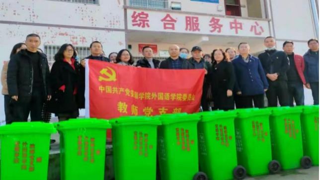 据悉,会前,外国语学院党委班子代表外国语学院教师党支部向清水屯村党支部赠送宜居乡村创建分类垃圾桶。(图文/外国语学院 流江涛)