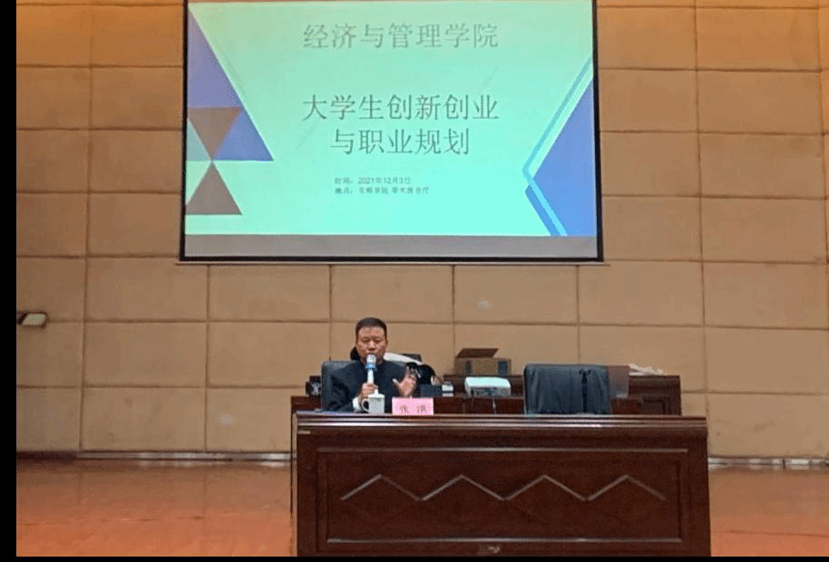 2021年12月3日下午,经济与管理学院在学术报告厅开展了大学生创新创业与职业规划专题讲座。此次讲座邀请了创业经历丰富的匠庐文旅联合创始人张洪来为我院19-21级学生进行职业规划指导。讲座由经济与管理学院党委书记赵世钊主持。