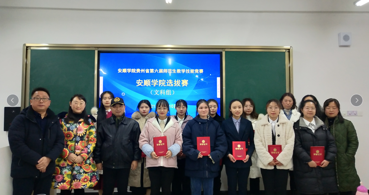2021年12月10日,贵州省第六届师范生教学技能竞赛安顺学院选拔赛分成文科组和理科组在顺理楼308和309教室举行。安顺学院教务处副处长郑海波到现场指导工作并观摩部分学生的竞赛。来自人文学院、经管学院、政法学院、教育学院、体育学院、外国语学院、数计学院、化工学院、物电学院、资源与环境工程学院、农学院和艺术学院35名选手参加了语文、数学、英语、政治、历史、物理、化学、生物、地理等15个学科的竞赛。来自安顺市第一高级中学语文高级教师李燕,安顺市第一高级中学数学高级教师李守权,安顺市第二高级中学英语高级教师卢飞,安顺市民中物理高级教师熊雪,安顺市第一高级中学化学高级教师齐晓晋,安顺市第三中学地理高级教师张慧,安顺市第二高级中学生物高级教师刘艳菁,安顺市云峰中学历史高级教师李玉琳,安顺市实验学校政治高级教师张云菊老师,普定县实验学校中学体育高级教师郑明祥,安顺市教育科学研究所音乐高级教师陈洪刚,安顺市第三高级中学美术高级教师刘凌霞的12位评审专家对参赛选手进行了客观、公正地评价。