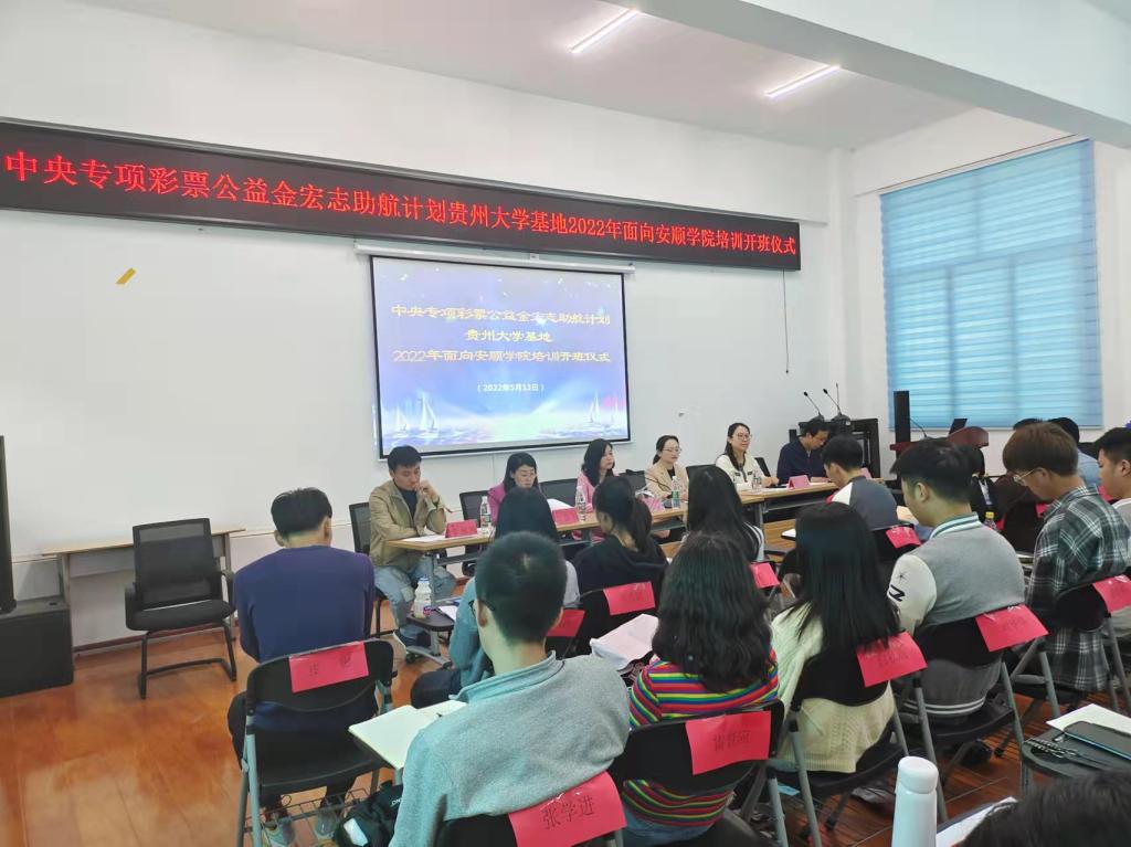 贵州大学招就处副处长杨敏、安顺学院招就处处长蒋晓昀及就业指导中心全体同志参加5月13日开班仪式。会上,杨敏介绍了项目实施的背景和此次工作的具体安排,蒋晓昀就我校宏志助航计划培训前期的组织情况及活动意义进行介绍,并对我校参训毕业生强调了培训纪律。