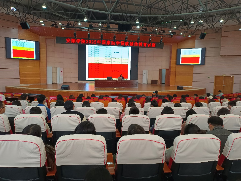 2022年5月20日,安顺学院2022年国家助学贷款诚信教育讲座在学术报告厅举行。学生资助管理中心全体老师及学校2022届在校贷款毕业生代表300余人参加讲座。讲座由学生资助管理中心主任崔晓莉主持。