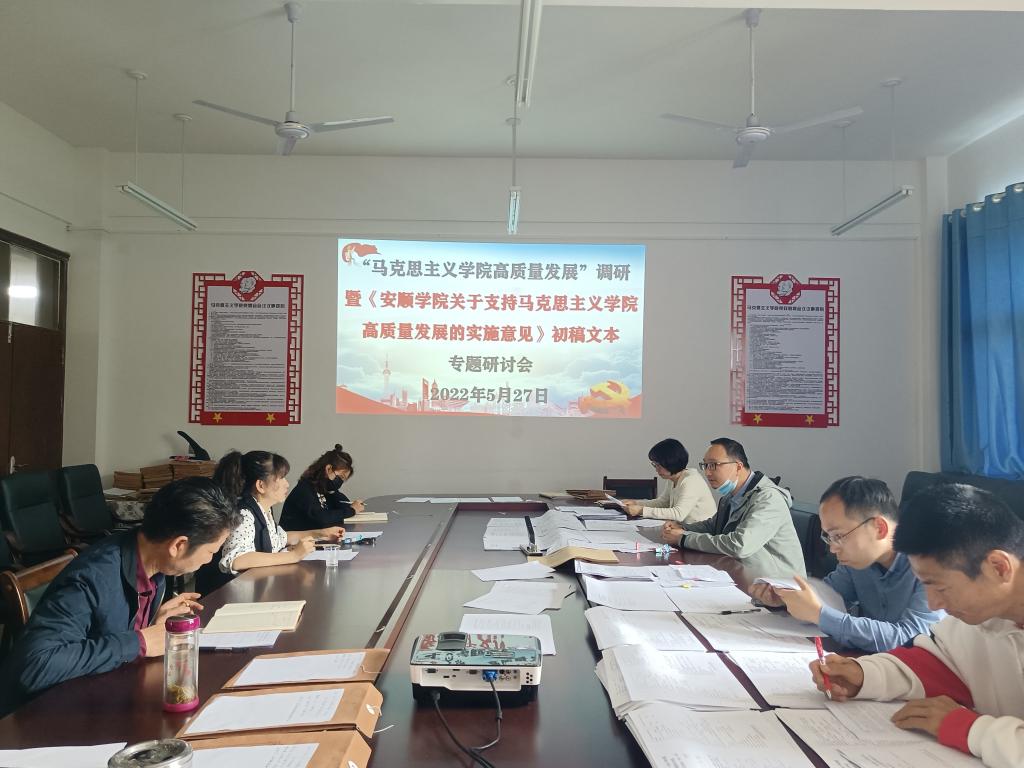 5月27日下午,马克思主义学院召开高质量发展调研会暨《安顺学院关于支持马克思主义学院高质量发展的实施方案(征求意见稿)》专题研讨会。马克思主义学院领导班子及科级以上干部、全体教授、全体博士参加了专题研讨会,会议由党委书记王罡同志主持。