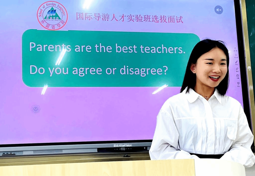 选拔过程包括初试与复试两个环节。初试以学生朗读中、英语文章的形式,测试学生的英语语音语调和普通话是否标准,初试通过学生进入复试环节。复试包含笔试与面试两部分,各占50%。笔试采用机考形式,测试学生英语基础。面试由教务处、外国语学院和旅游学院的5名教师任评委,采用中文提问、英文即兴演讲形式,考核学生的中英文语言组织能力、表达能力、应变能力等。最后根据学生的笔试和面试成绩选拔出学生,组建国际导游人才实验班,培养具有国际视野、中英文口笔语流利、能够娴熟地用汉语/英语对国内旅游文化资源进行讲解和国际交流的复合型人才。(文/图:外国语学院 柴能)