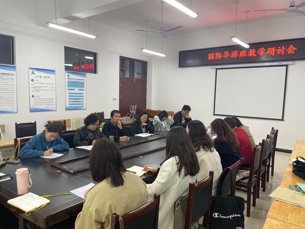10月21日下午,安顺学院国际导游班教学研讨会在外国语学院会议室召开。外国语学院院长蒋燕,教务处副处长、班级导师助理彭瑛,大学公共外语教学部副主任、班主任柴能出席会议,班级任课教师、辅导教师参加会议。会议由教研室主任付菡主持。