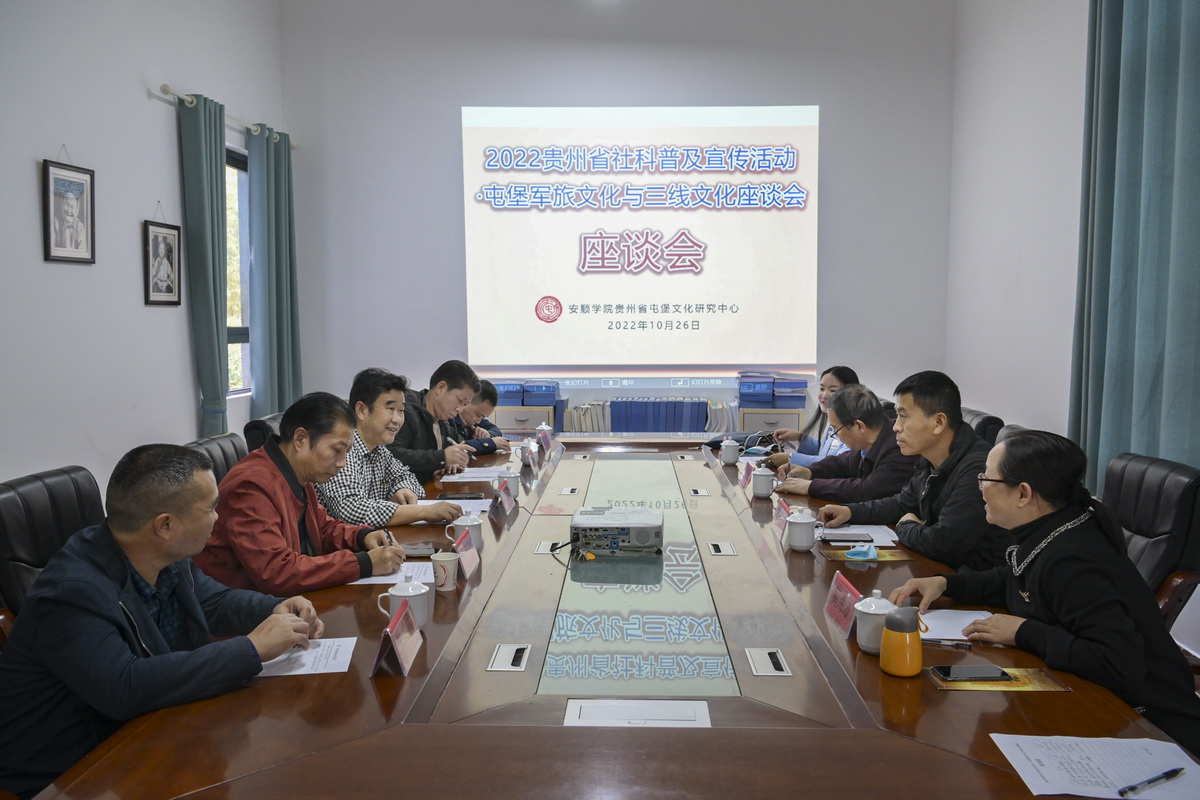 10月26日,由省社科示范基地贵州省屯堡研究会主办,安顺学院屯堡文化研究中心承办、安顺市屯堡文化学会协办的“2022贵州省社科普及宣传活动·屯堡军旅文化与三线文化”座谈会在安顺学院屯堡文化研究中心会议室举办。座谈会由安顺学院屯堡文化研究中心主任吕燕平主持。