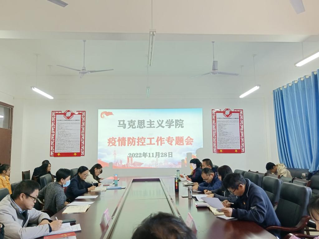 2022年11月28日,马克思主义学院在乐学楼512会议室召开疫情防控工作专题会,马克思主义学院全体教职工参会,会议由马克思主义学院党委专职副书记潘光才主持。