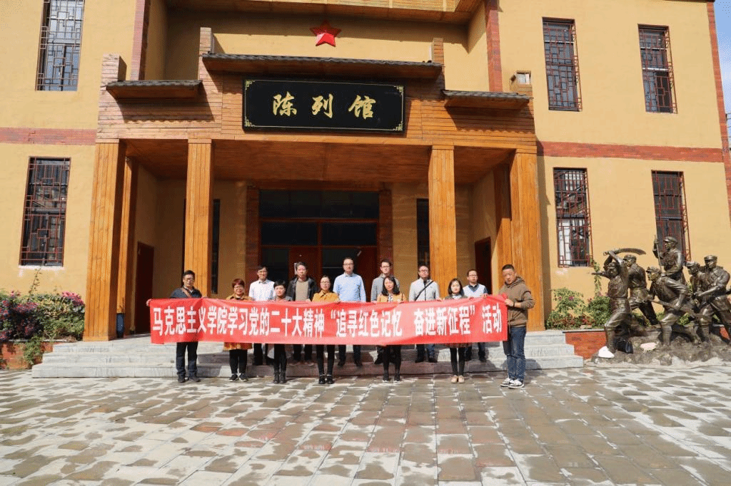 马克思主义学院教师党支部全体党员在板袍村陈列馆前开展重温入党誓词,分别参观了陈列馆、红三军团渡江作战旧址的所在地、中国工农红军第一方面军坝草渡口等,通过追寻红色记忆,使党员同志逐渐体会红军革命的艰辛与不易,逐渐感悟到红军革命精神的含义,深刻意识到作为新时代高校思政课教师的使命担当。(文/图:马克思主义学院 潘光才)