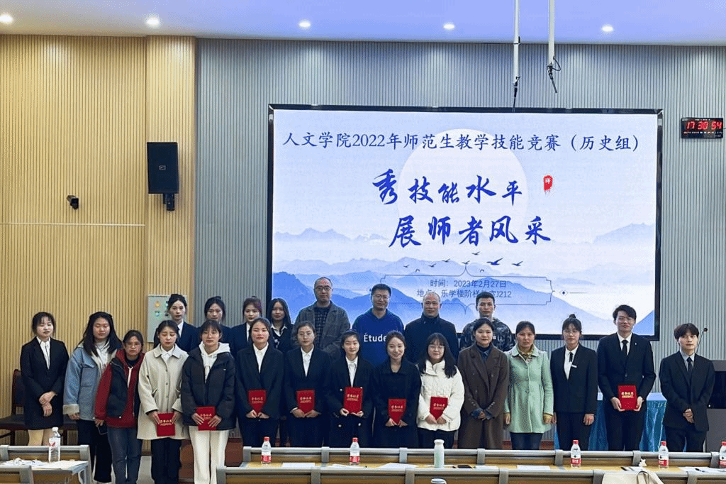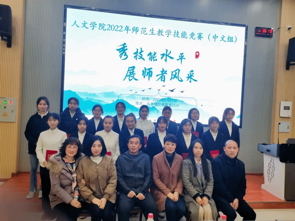 为提升师范生实践教学技能,提高师范生的就业竞争力和专业素养,适应中学课程改革的要求,2023年2月27日下午人文学院在乐学楼阶梯教室J114、J212举办师范生教学技能竞赛。
