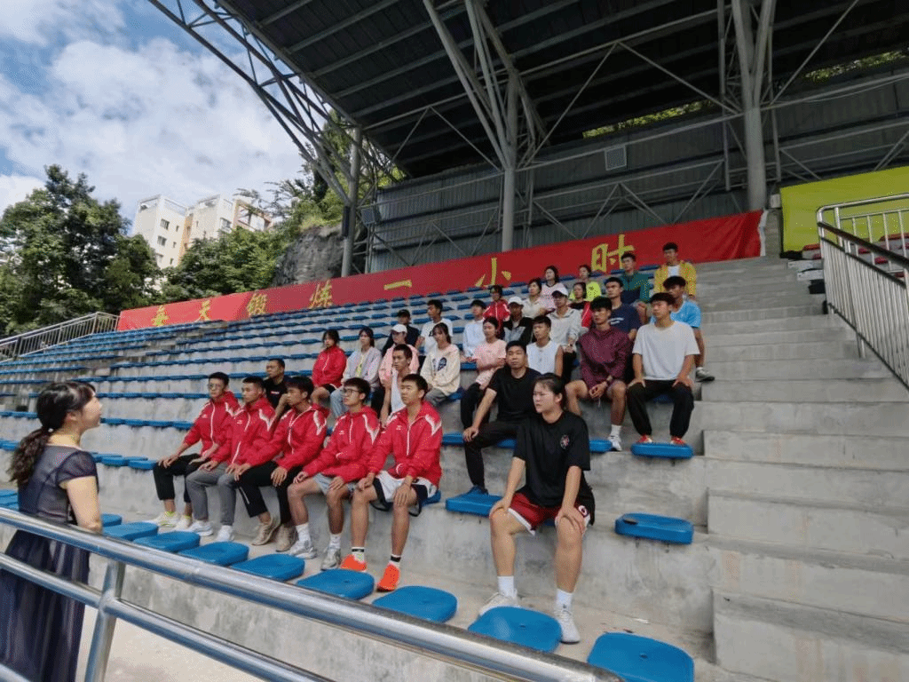 7月23日下午,安顺学院体育学院院长邓文红到田径场看望代表学校参加2023年贵州省大中学生田径锦标赛的全体教练员和运动员。