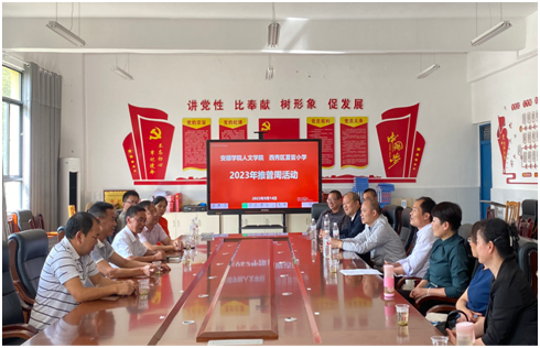 2023年9月14日,人文学院推普工作队到夏官小学开展推普活动。本次活动,由人文学院院长胡赤兵教授为队长,副书记杨明副教授、副院长李云根教授为副队长,省级普通话水平测试员蓝芳、刘蕊杏、万雷、李聚刚等老师以及7位同学为成员,组成了一支精干的师生推普工作队。围绕第26届推普周“推广普通话 奋进新征程”主题,推普工作队师生大力宣传“推广普及国家通用语言文字”的重要性,服务铸牢中华民族共同体意识、助力乡村振兴。