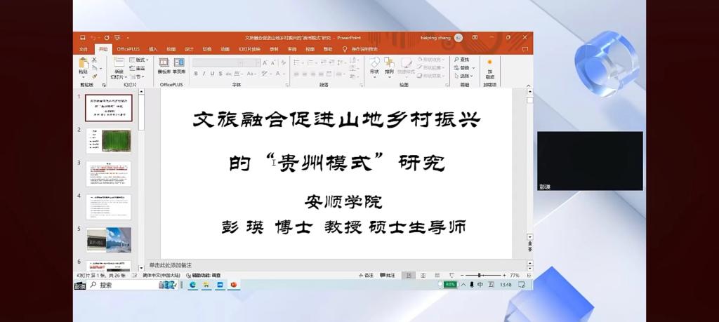 彭瑛关于文旅融合促进山地乡村振兴的“贵州模式”报告引起了与会者的较大兴趣。(文/图:旅游学院 彭瑛)