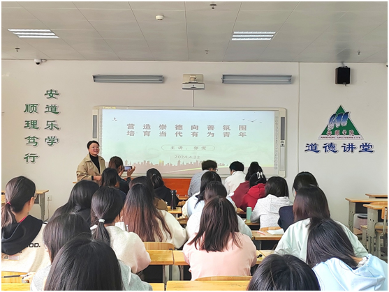 为提高学生的道德水准、文明素养及道德实践能力。2024年4月22日下午,安顺学院道德讲堂开展“营造崇德向善氛围   培育当代有为青年”专题讲座。教育科学学院党委专职副书记、党委统战委员郭雯老师主讲,教育科学学院学生聆听学习。