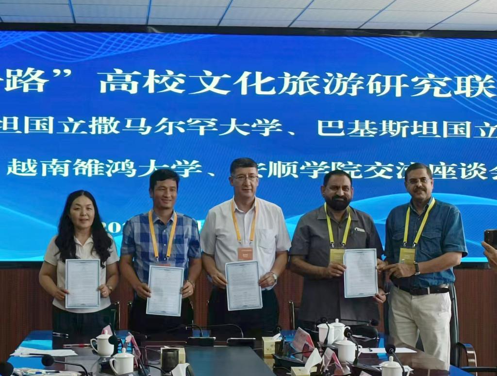 8月25日,正值“一带一路”高校文化旅游研究联盟成立之际,来自乌兹别克斯坦国立撒马尔罕大学、巴基斯坦国立旁遮普大学、越南雒鸿大学等多国高校学者到我校进行学术交流。安顺学院党委委员、副校长殷红敏出席座谈会,校团委、旅游学院、人文学院等部分教师参加座谈会。
