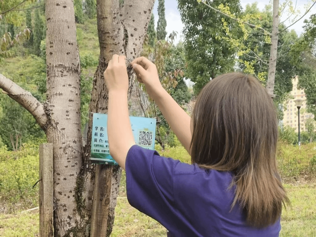 此次挂牌活动让绿植有了专属自己的“身份证”,标识牌上详细的记录了每种植物的科属、名称、习性、专属二维码等信息,通过扫码大家就能了解更多关于此类植物的知识;此次活动共在校园各处挂了145个牌子,其中挂牌121个,插牌24个,涉及42种植物,26个科。